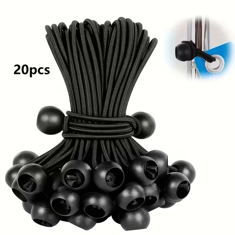 20pcs Outdoor Tent Binding High Elastic Rope, Reusable Rubber Stretchable Cord for Securing Tarps, Camping, Boats, Heavy Items
