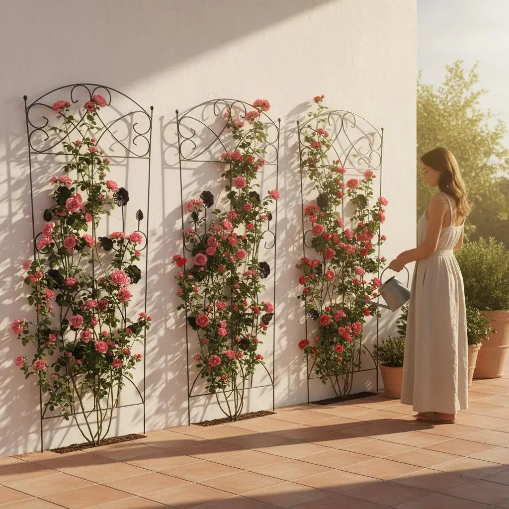Clôture de jardin en acier noir - 3 pièces, dimensions 110,5 x 42,5 cm pour plantes grimpantes - Idéal pour l’extérieur