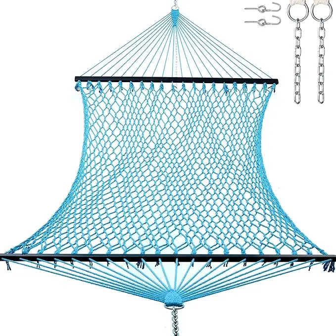 13' Double Traditional Cotton Rope Hammock Hand-Woven Swing with Hardwood Chain and Hooks for Indoor & Outdoor Use for Adults