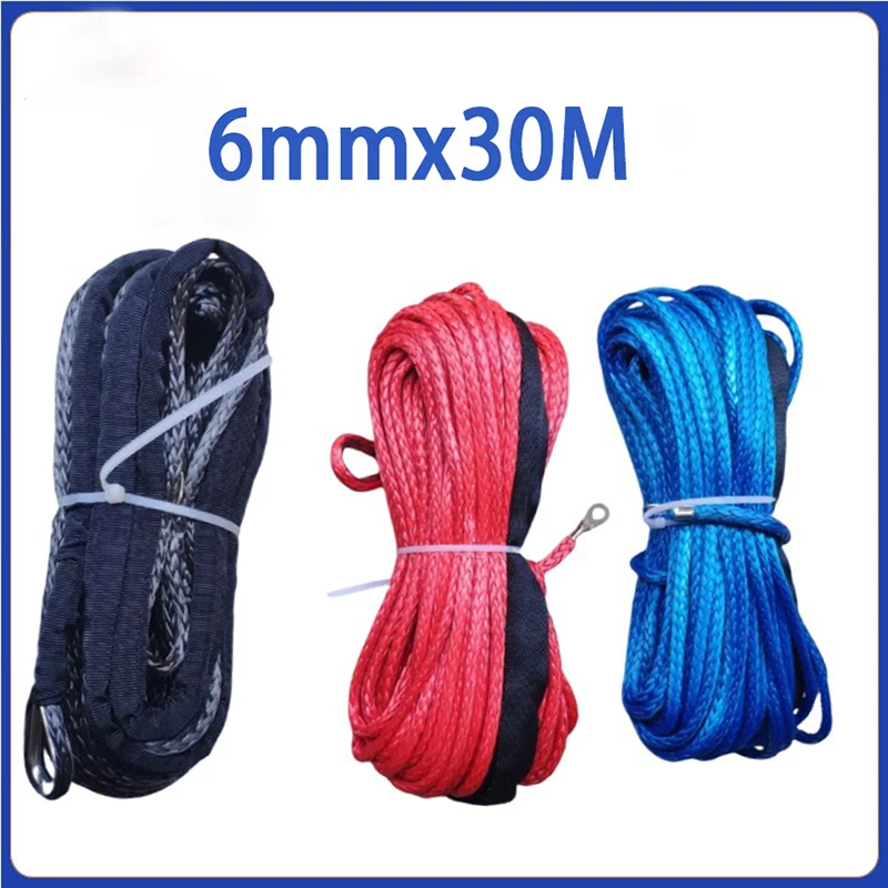 6mmx30m Synthetic Fiber Rope Winch Rope 7000 LBS 1/4 Trailer Rope Trailer Hook Electric Winch Rope