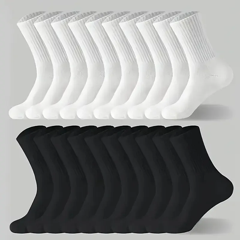 1/10 Pairs Neutral Solid Color Mid Calf Round Neck Socks Spring Autumn Sweat Absorbing Breathable All Season Sports Socks