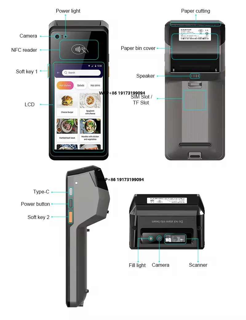 C75 Android 11 Handheld PDA Rugged Mobile Terminal with 58mm Thermal Printer & 2D Barcode Scanner CPU Processed Stock