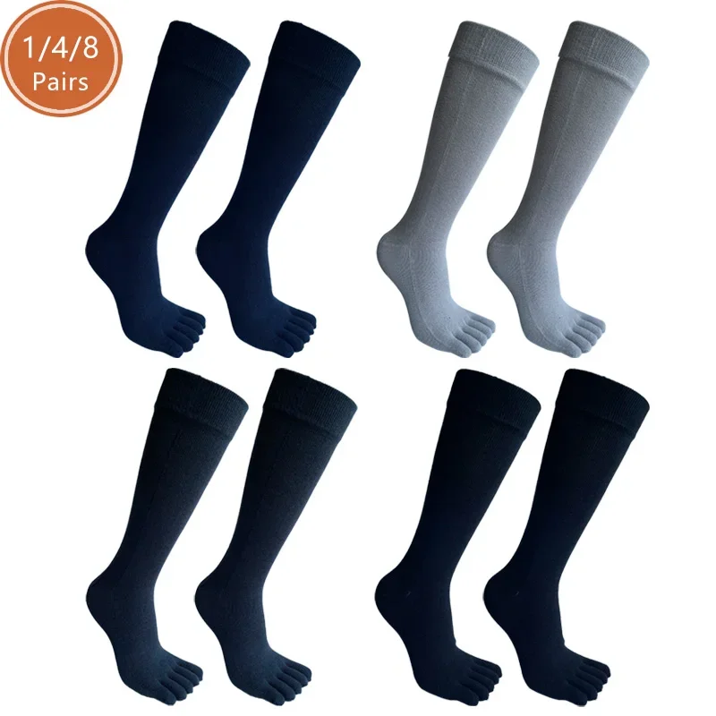 1/4/8 Pairs Combed Cotton Five Finger Socks Man Business Solid Casual Party Dress Long Anti-Bacterial Warm Toe Socks Gentleman