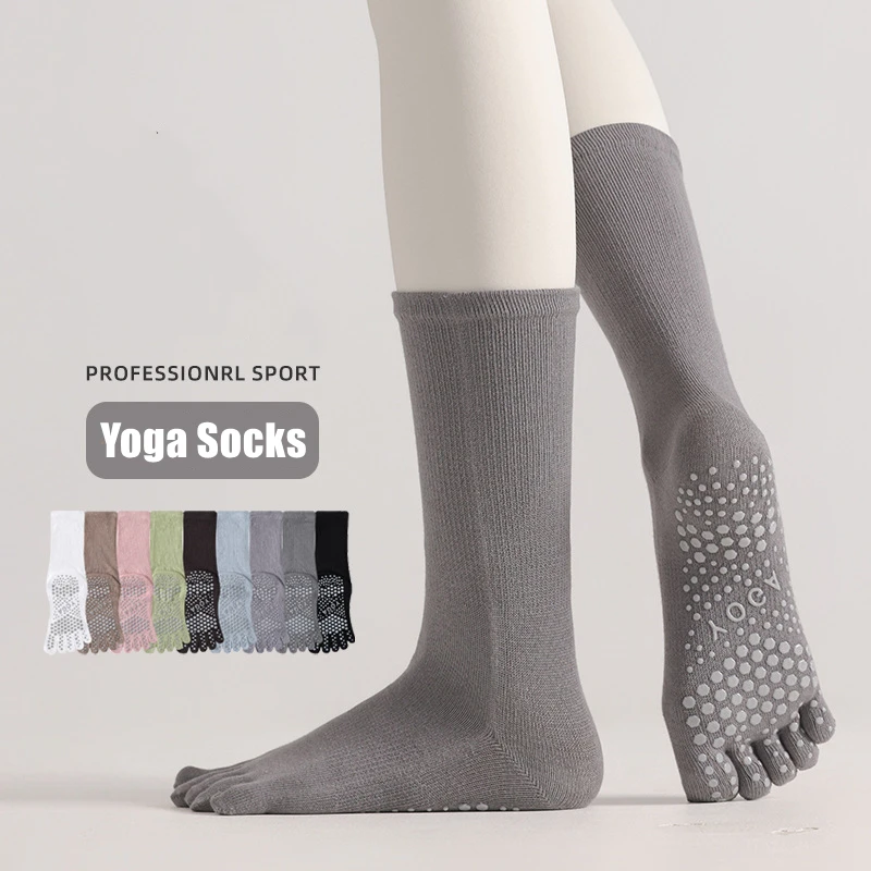 1 Pairs Woman Yoga Socks Candy Color Cotton Silicone Non-Slip Split Toe Pilates Socks Outdoor Cycling Five Finger Sports Socks