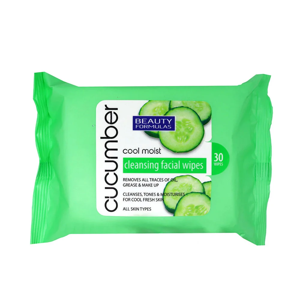 Beauty Formulas Cucumber Cleansing Facial Wipes 30 Pack, Refreshing Makeup Remover for All Skin Types
