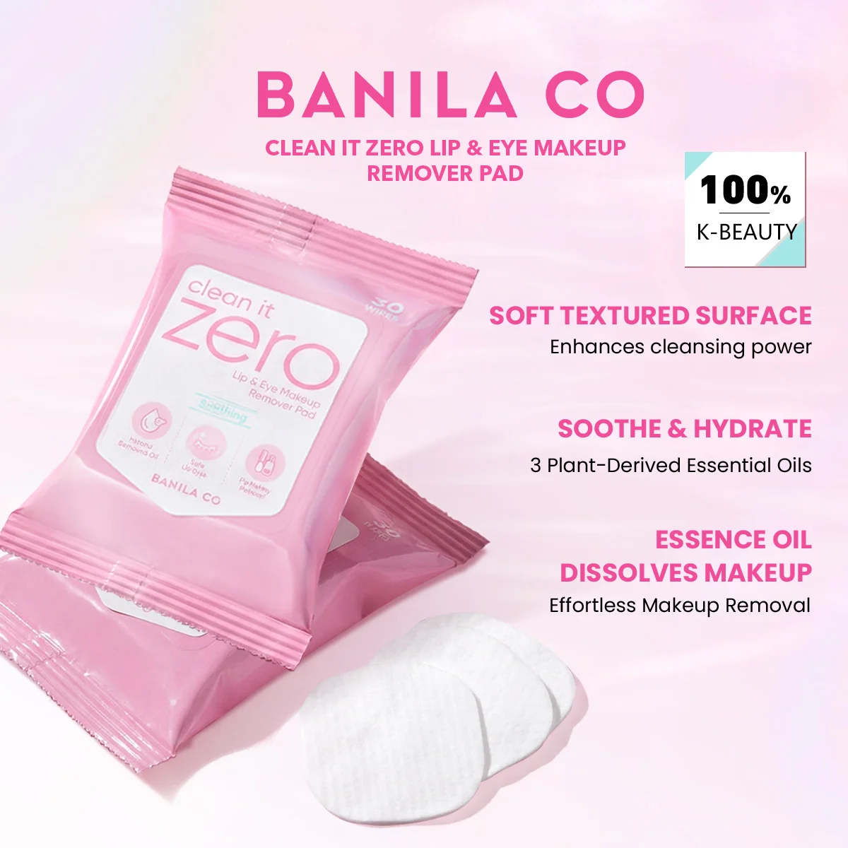 Banila Co Clean It Zero Lip & Eye Makeup Remover Pad,Soft & Non-Abrasive Texture,Gentle On Delicate Skin,K-Beauty,Korean Makeup