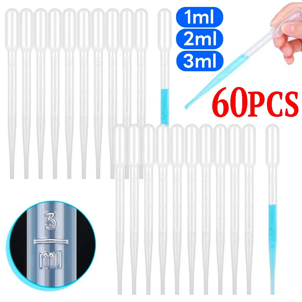 20-60Pcs 1/2/3ML Transparent Pipette Dropper Disposable Safe Plastic Transfer Pipette Scale Pipette Small Laboratory Supplies