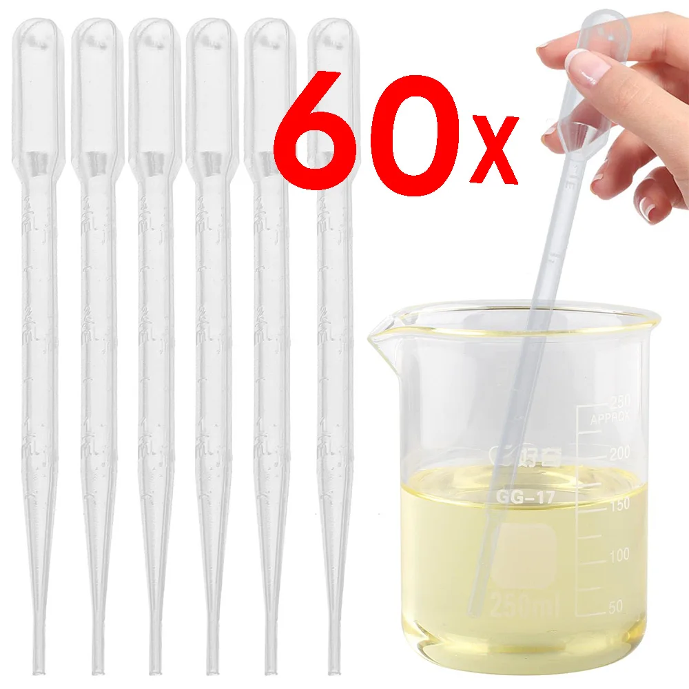 20-60Pcs Transparent Pipette Dropper Disposable Safe Plastic Transfer Pipette 1/2/3ML Scale Pipette Small Laboratory Supplies