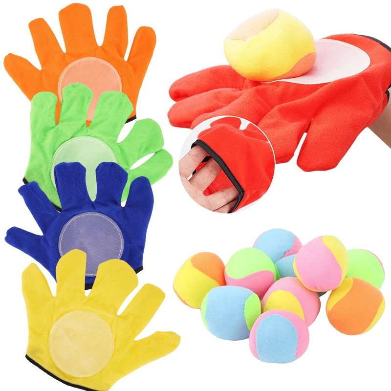 Sticky Ball Gloves with Soft Ball Set Throwing Catching Hand Eye Coordination Dog Chasing Game Accessory Stress Relief Props ZYF
