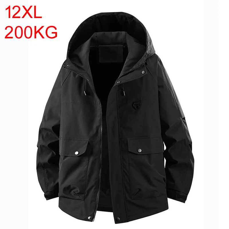 Spring Autumn Solid Color Jacket Men's Fat Plus Large Hooded Casual Outdoor Work Clothes Loose Fashion Sports 200kg 11xl 12xl