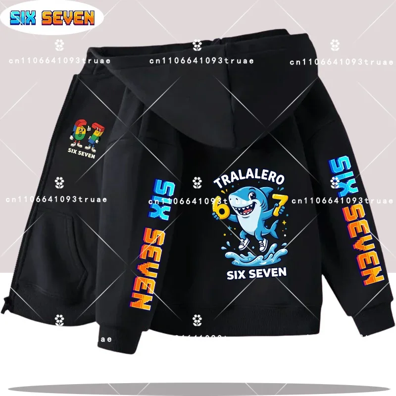 2026 New No. 67 Brainrot Boy Hoodie with Zipper, Casual Shirt, Spring-Autumn Coat, Children's Hooded Shirt with Cartoon Print
