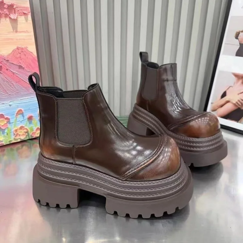 2025 New Women's Chelsea Boots Chunky Platform Sole Slip On Design Retro Block Heel Ankle Booties Winter Shoes