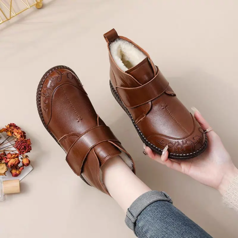 2025Mom's Winter Cotton Shoes Non-Slip Warm Flat Thick Fleece Middle-Aged and Elderly Soft Sole Grandma Short Boots