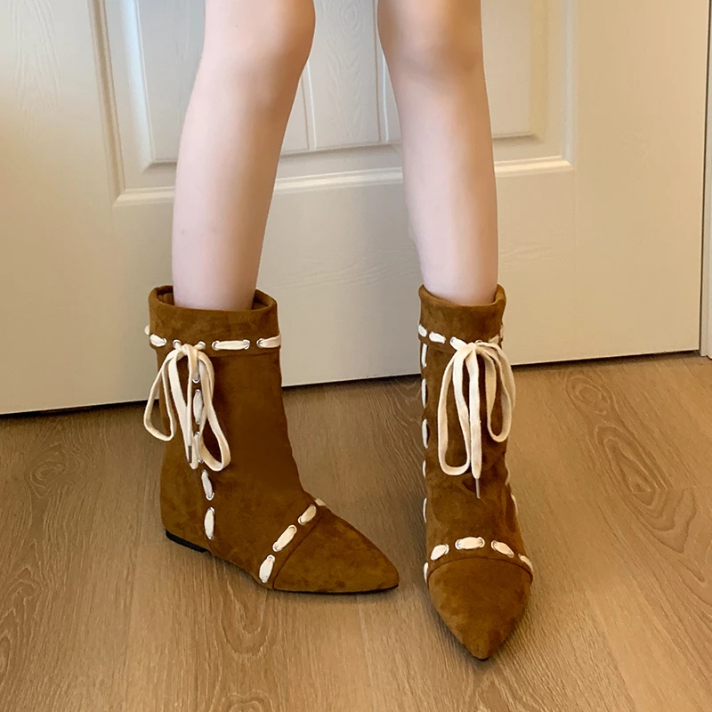 Flat-soled pointed toe short boots for women 2025 autumn new retro Maillard western denim boots