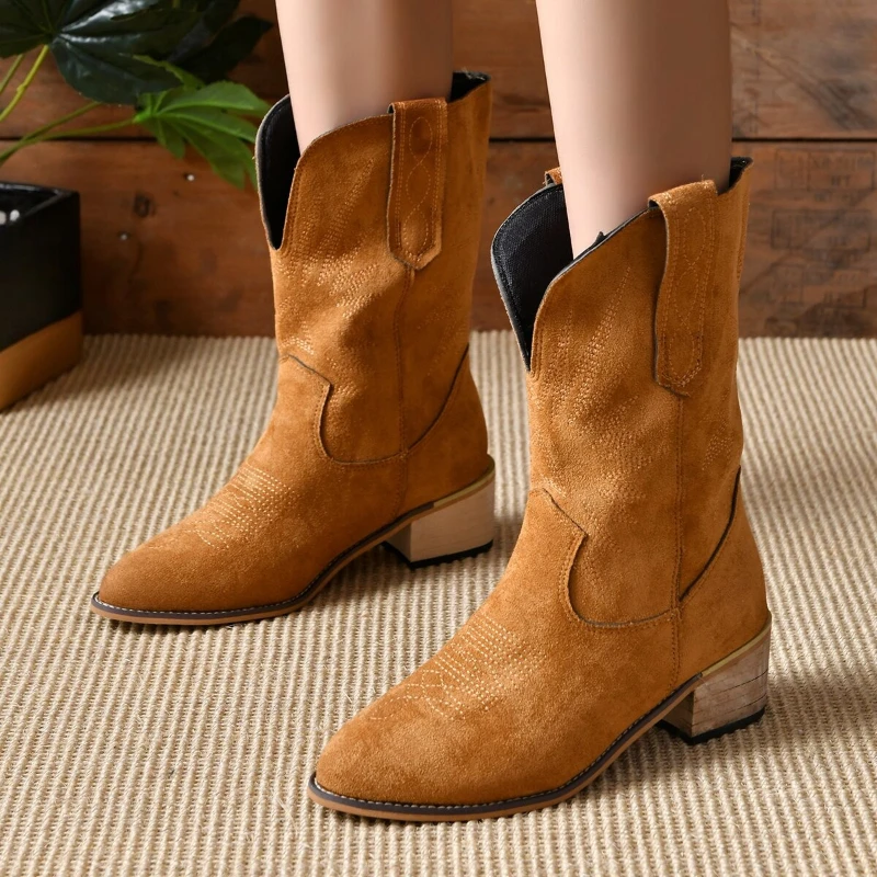 Women's Boots 2025 High Quality Shoes Female Modern Party Boots Autumn Suede Pointy Toe Chunky Heel Lady Ankle Boots Botas Mujer