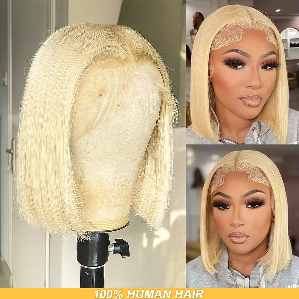 613 Blonde Lace Front Wigs Short Bob Brazilian Human Hair Wig HD Transparent Lace Frontal Wigs Preplucked Pre-cut, Pre-Bleached