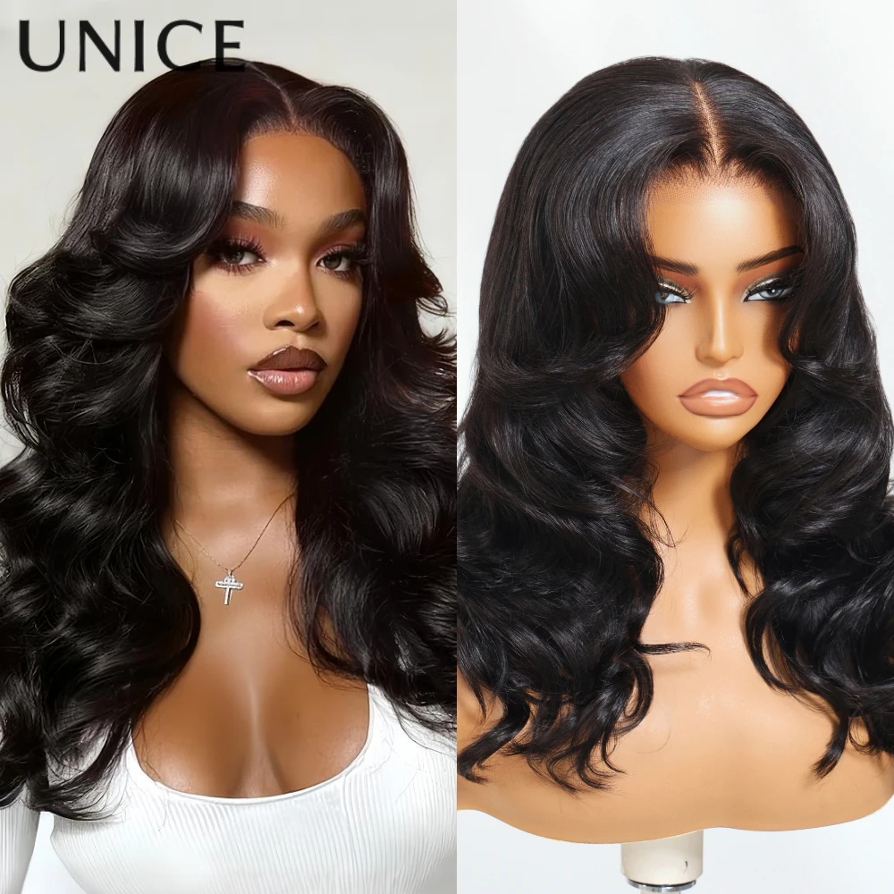 UNice Butterfly Cut 180% Density 7x5 Lace Body Wave Human Hair Wig With Feathered Layers Pre Cut Pre Bleached Glueless Wig