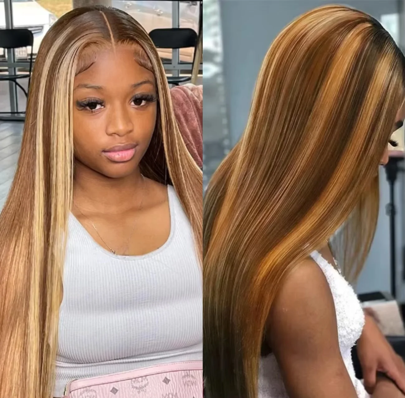 Ombre Honey Blonde Highlight Colored Bone Straight Remy Human Hair Wig Pre-plucked 13x4 13x6 HD Lace Frontal Human Hair Wigs