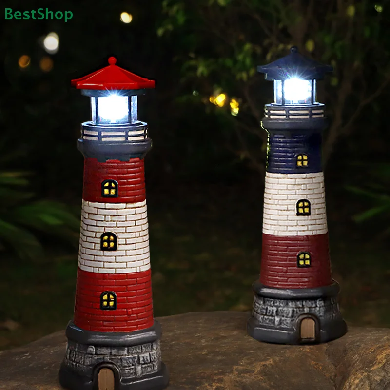 LED Solar Lighthouse, 360 Degree Rotating Light Courtyard Decoration Waterproof Garden Outdoor Passage Statue Light Resin Crafts