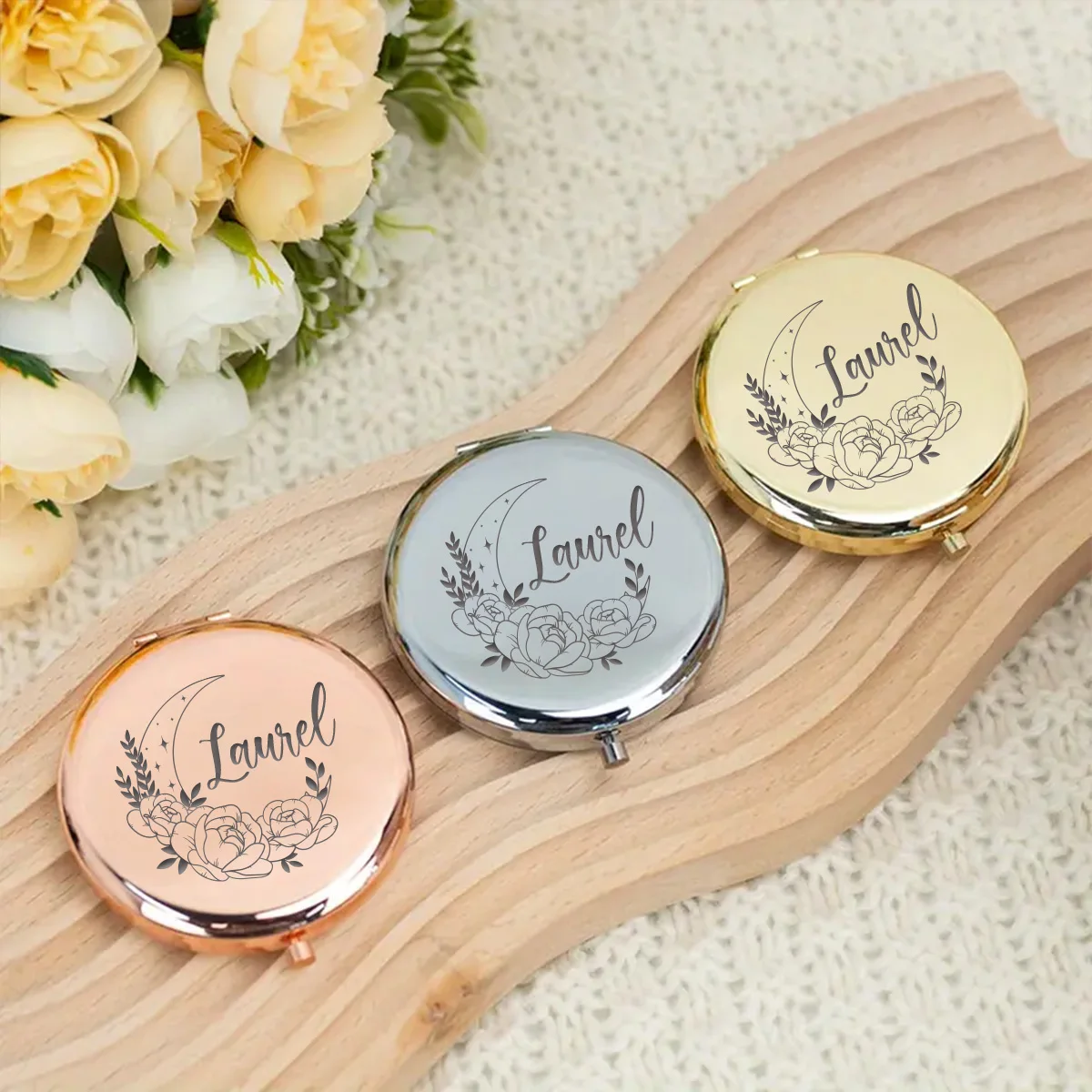 1pc Cartoon Romantic pattern Personalized Text Mirror With Name Makeup Mirror Folding Mirror Anniversary gifts