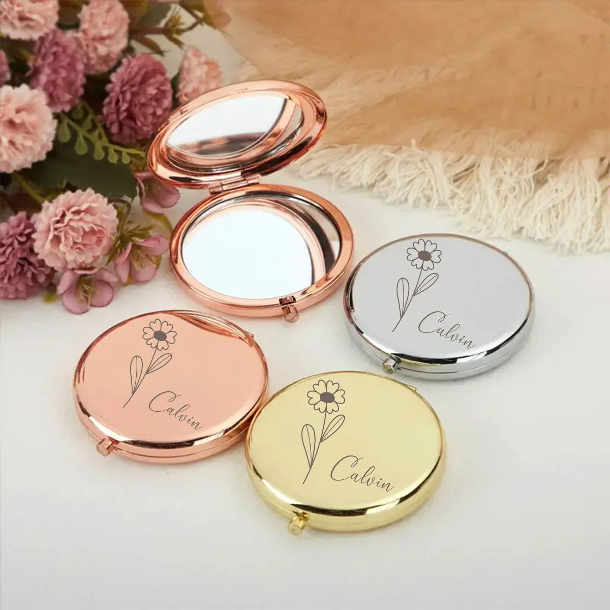 1pc Cartoon Flower Custom Name Mirror With Name Makeup Mirror Folding Mirror Valentine Gift