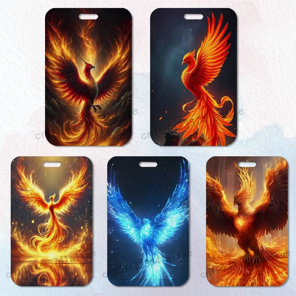 Myth Flame Phoenix Card Holder Durable With Carabiner Name Tag Vertical ID Badge Holders Credentials Protection