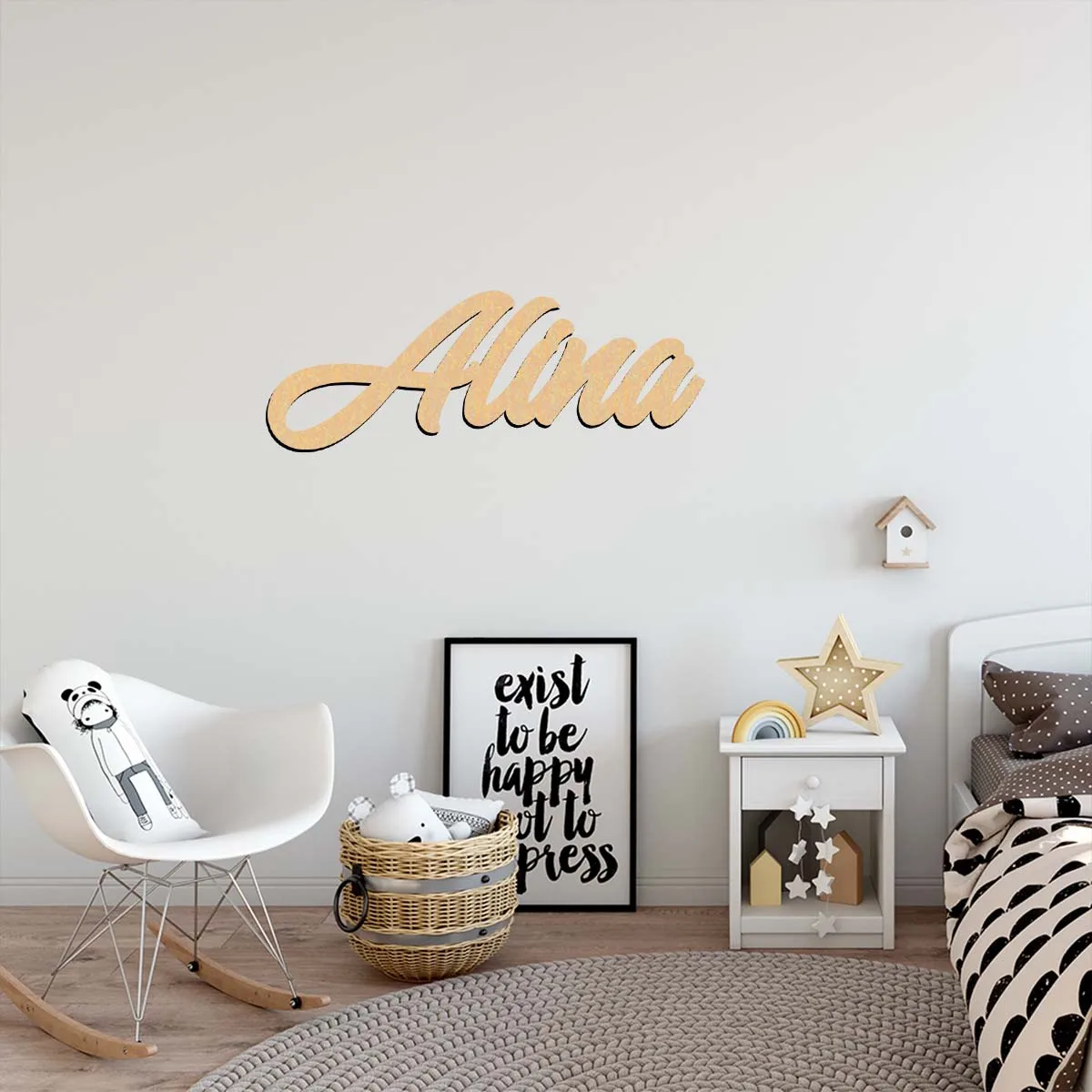 1pc Funny Alina example Customized Letter Laser-Cut Sign Wood Material Wooden Decor Handcrafted with Elegant Cursive Lettering