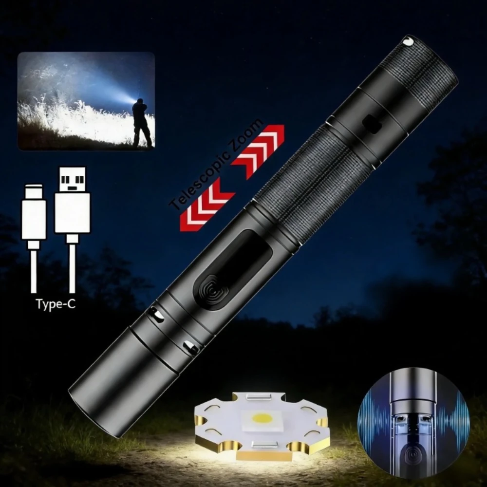 3000 LM Bright Flashlight High Lumens, USB-C Rechargeable, 5 Modes, Zoomable, With Lgnition Lens, For Camping, Emergencies