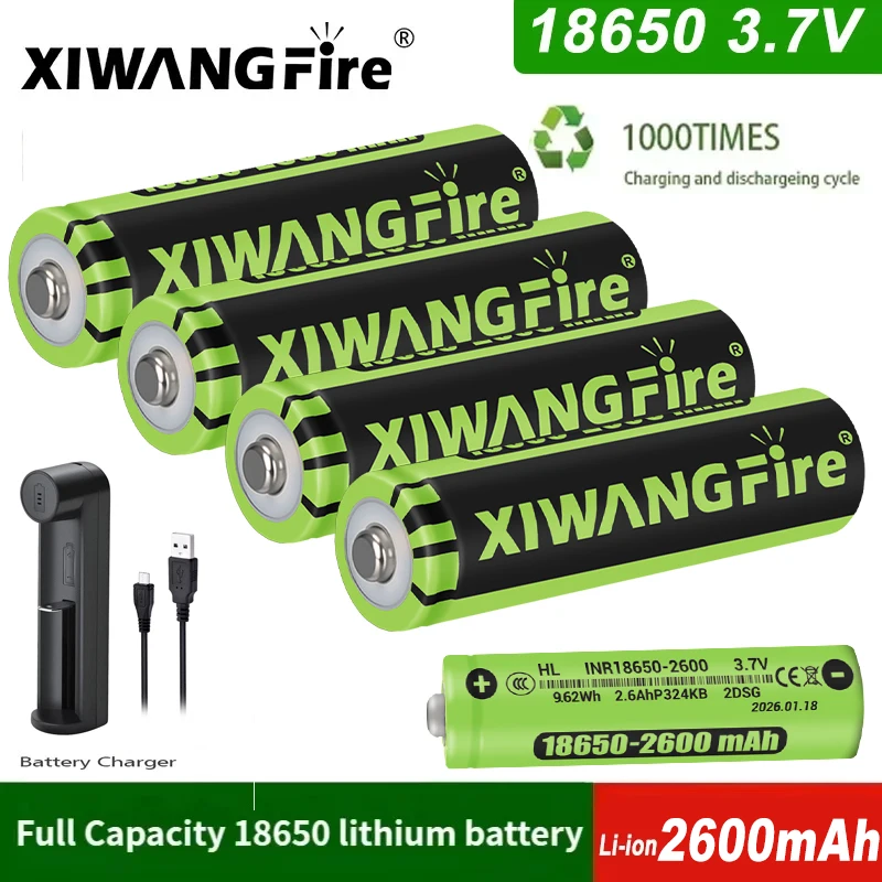 18650 Battery 3.7V Rechargeable 2600mAh Lithium Ion XIWANGFIRE Original Battery for Speaker Radio Toy Headlight Flashlight Torch