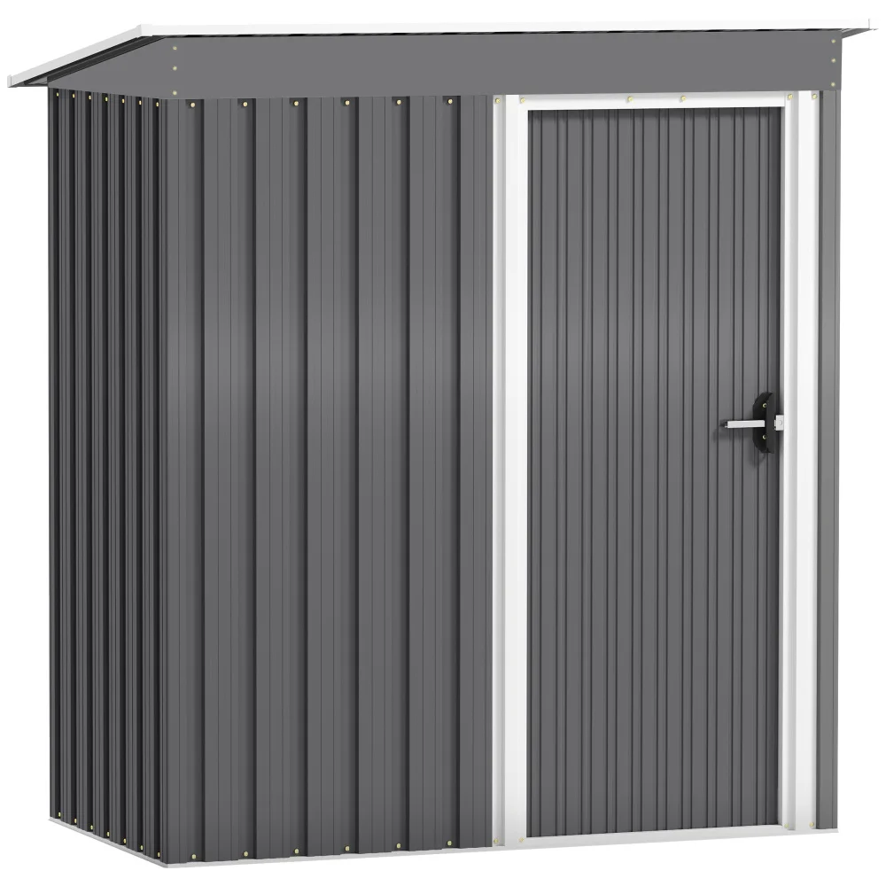 PINGGO Metal Garden Shed, Outdoor Lean-to Shed for Tool Motor Bike, with Adjustable Shelf, Lock, Gloves, 5'x3'x6', Green