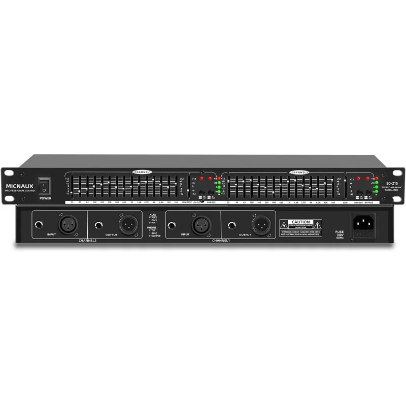 Stereo Equalizer for Home Audio System, Dual Channel 15-Band Graphic Equalizer Professional Rack Mount DJ EQ, Noise Reduction