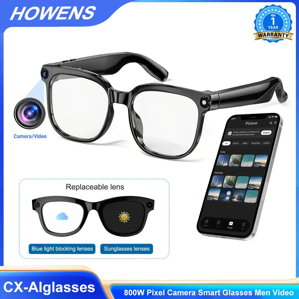 HOWENS 800W Pixel Camera Smart Glasses Men Video Recording AI Photo Recognition Bluetooth Call Voice Translation Sunglasses Man