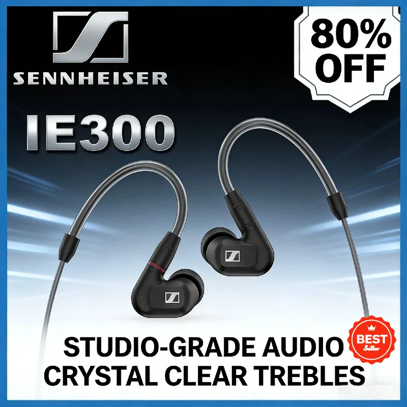 Genuine Sennheiser IE300 InEar Headphones Wired HiFi Stereo Sound DeepBass Detachable Cable Noise Isolating for Music Audiophile
