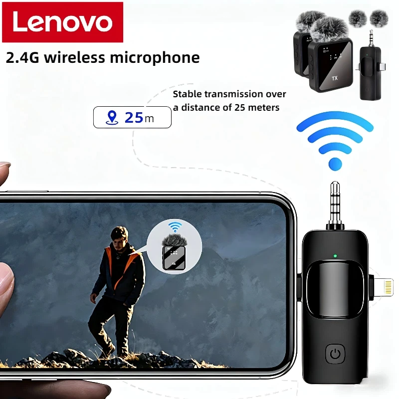 Lenovo Wireless Lavalier Microphone Noise Reduction Clip Mic with Reverb for Video Recording Compatible with iPhone Android 2026