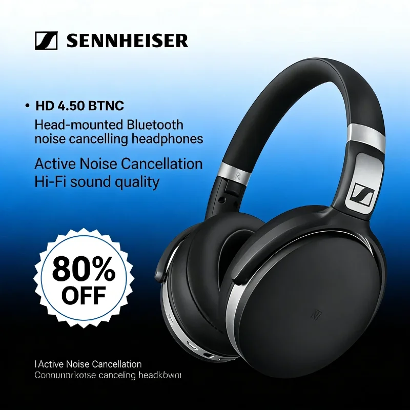 Sennheiser HD 4.50BTNC Wireless Bluetooth Headphones Active Noise Cancelling HiFi Stereo Bass Headset with Mic for Travel HOT