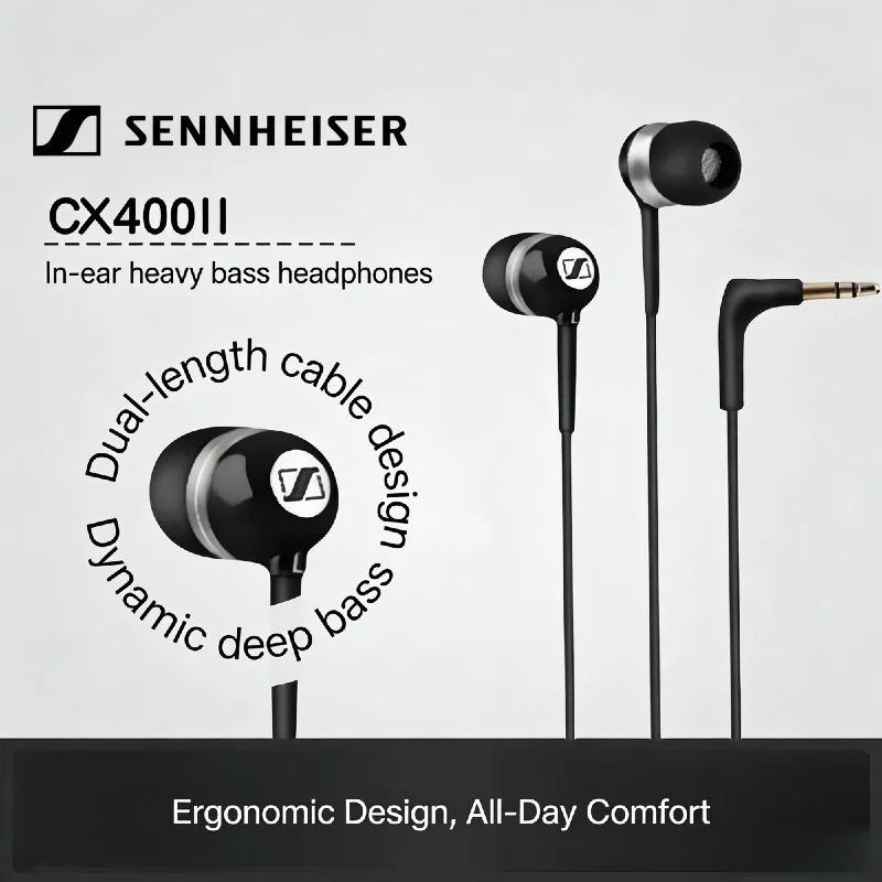Sennheiser CX400 II Wired Earphones Heavy Bass Hi-Fi Stereo Music Headset Noise Cancelling Earbuds 3.5mm Gaming Sports Headset