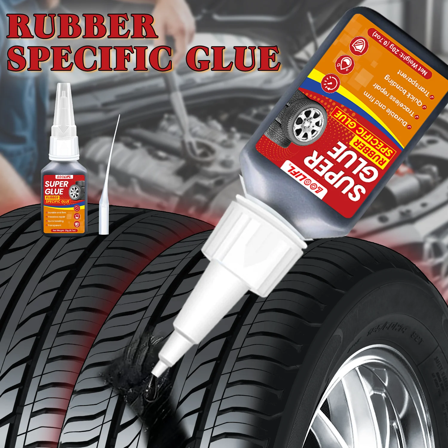 LOOLIFL 20ML Tire Repair Black Glue Liquid Strong Rubber Wear-resistant Non-corrosive Adhesive Instant Bond Leather Repair Tool
