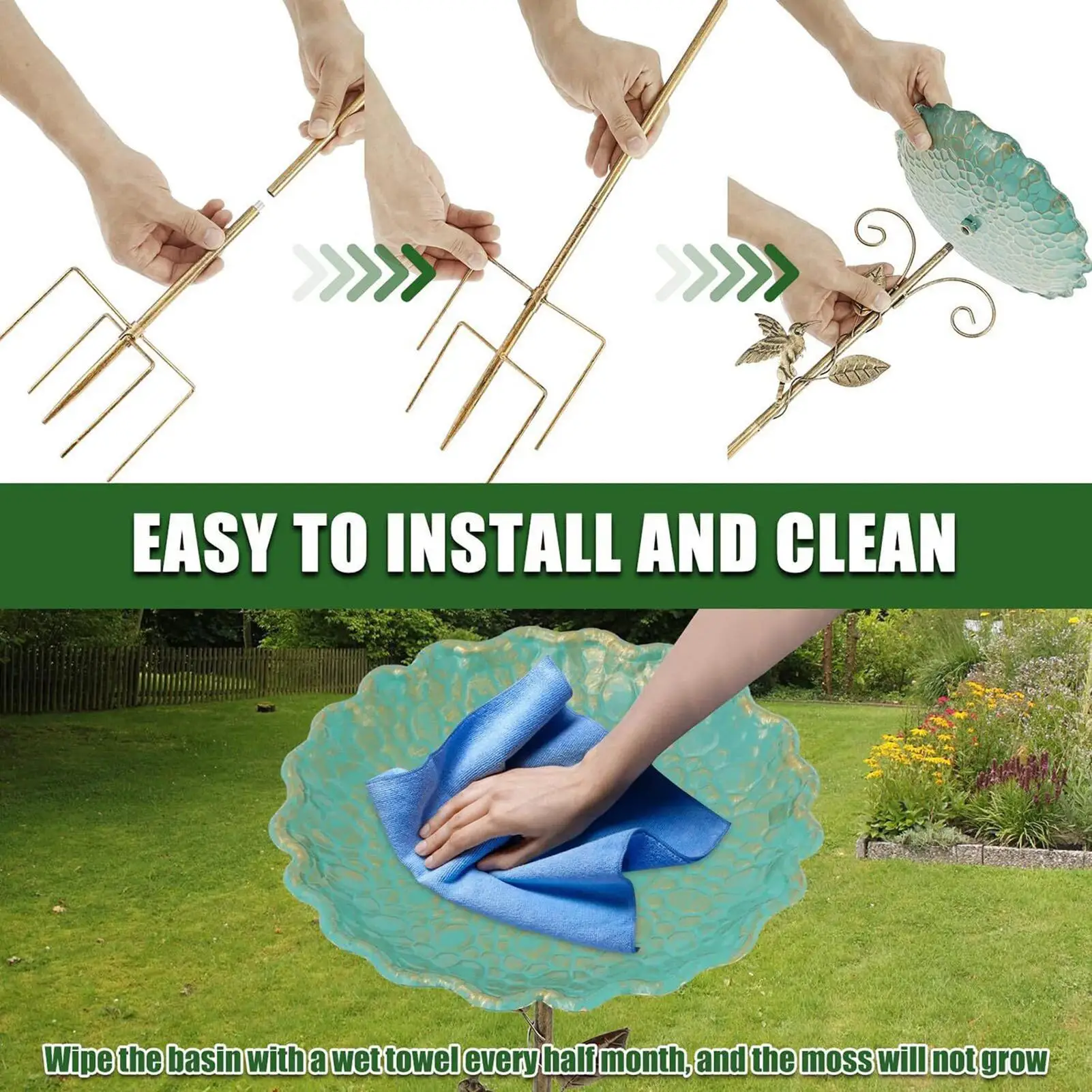 Garden Bird Bath 30 Inch Height Decorative Water Feeder Tall Bird Bath With Stake For Outdoor Garden Backyard Lawn Terrace Park