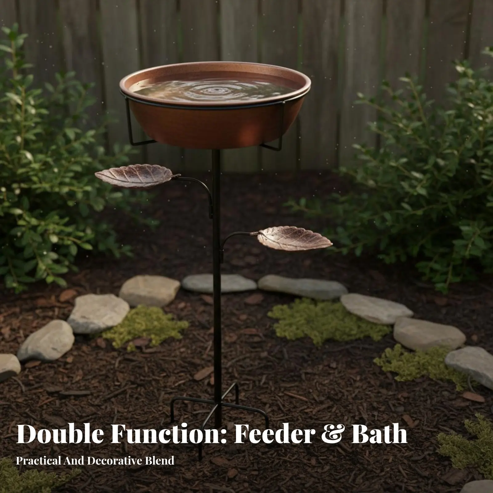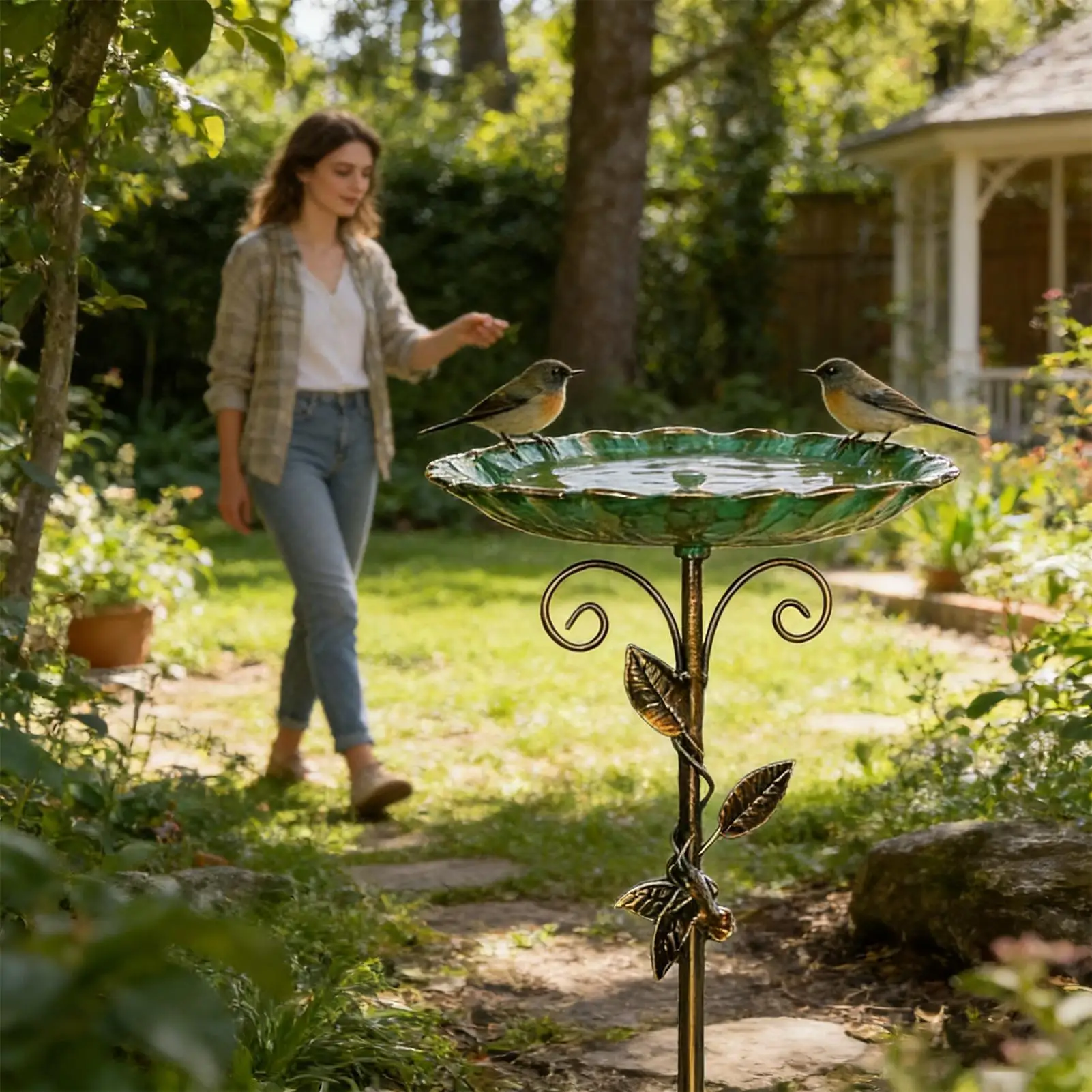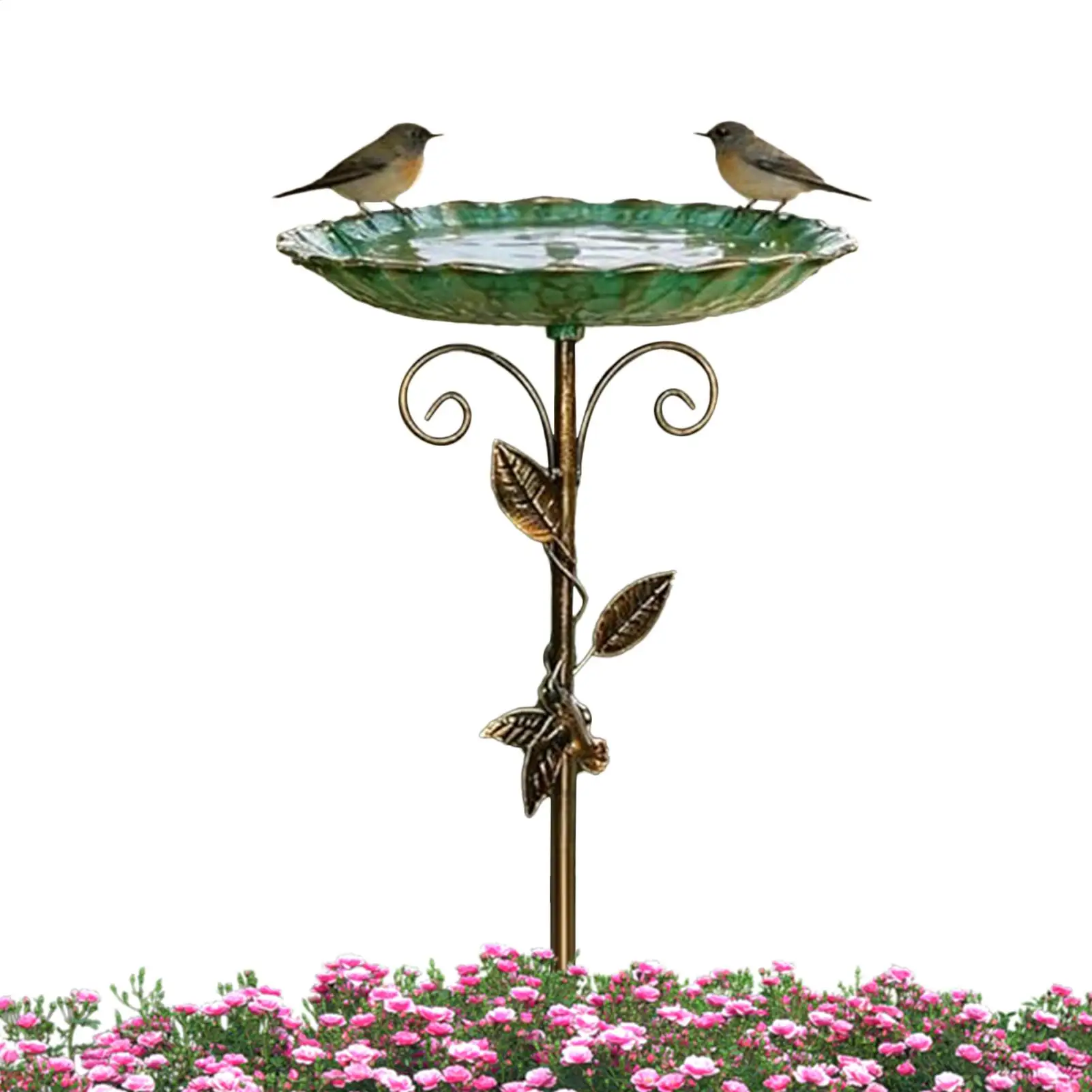 Metal Avian Bath with Ground Stake Deep Basin Avian Bath with Ground Stake Decorative Foliage Design Stable Base for Patio