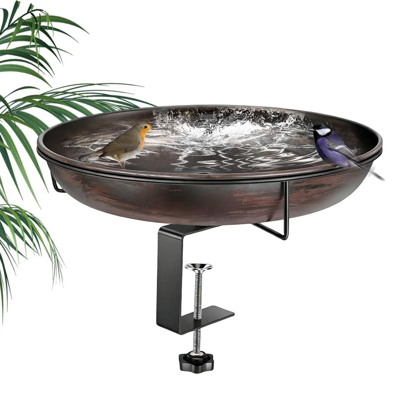 Retro Metal Bird Bath With Adjustable Clamp Balcony Railing Hanging Bird Bath Tub Bird Bath Feeder For Outdoor Garden Decor