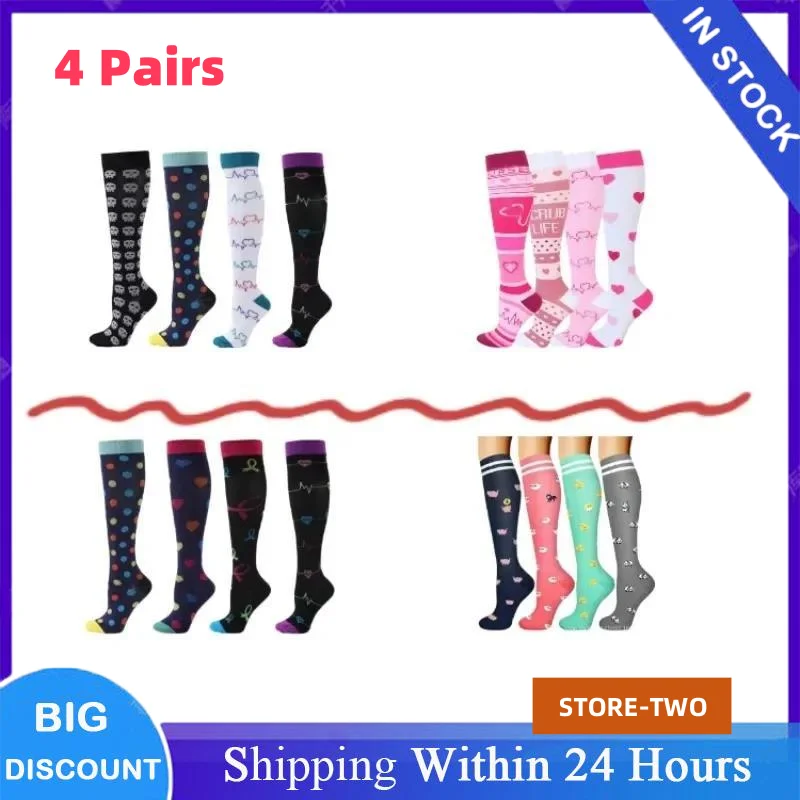 4Pairs Men Women Sports Compression Socks Stockings Elastic Sports Beautiful Running Nurse Outdoor Climbing Cycling Socks Gym