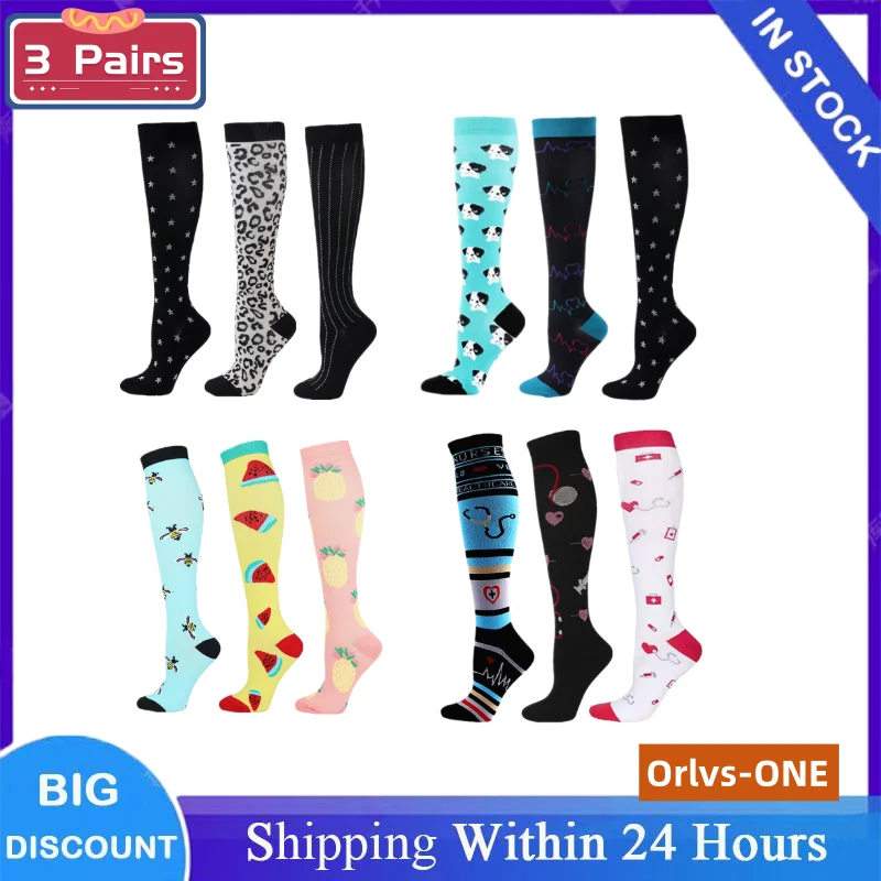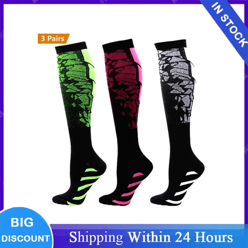 3 Pairs Men Women Sports Compression Socks Breathable Elastic Beautiful Leg Running Nurse Climbing Cycling Yoga Socks Gym
