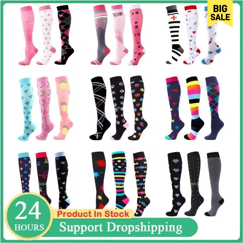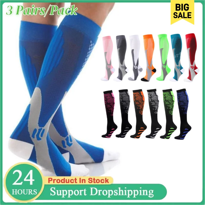 3Pairs Men Women Compression Socks Knee Stocking 20-30mmHg Edema Diabetes Varicose Veins Nurse Compression Socks Running Socks