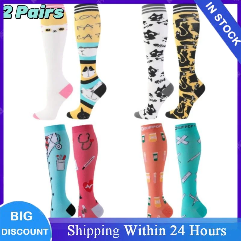 2Pairs New Compression Socks Knee High 20-30 Mmhg Fit Medical Edema Diabetes Varicose Veins Running Marathon Compression Sox