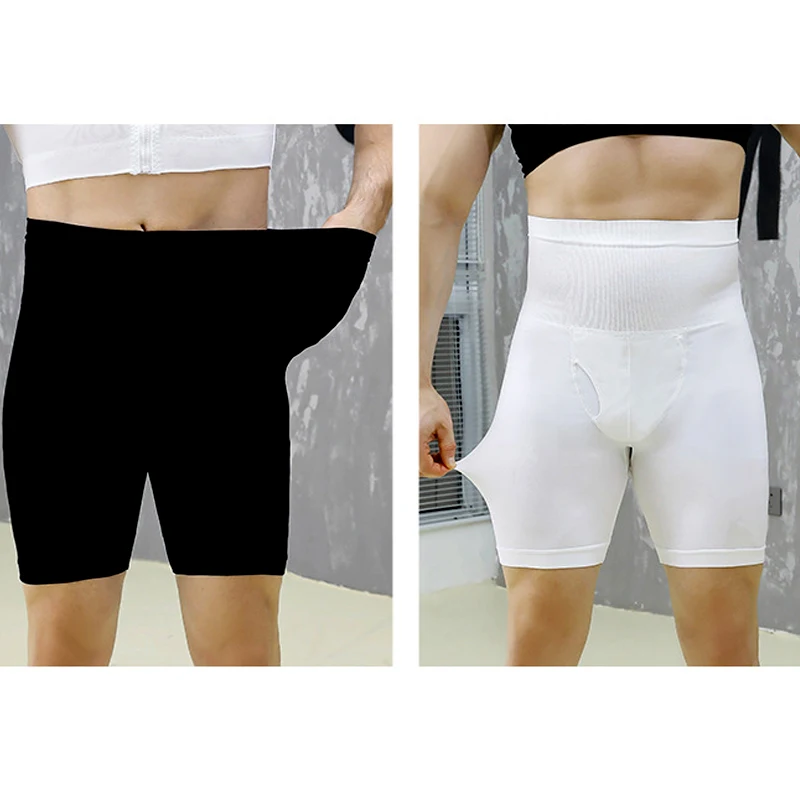 Mens New Fitness Slim Stretch Leather Pants Body Shapers Waist Trainer High Waist Abdomen 3 Hooks Compression Leather Shorts
