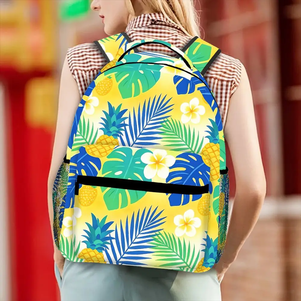 All-Over Print Tropical Backpack, Casual Daypack with Monstera Leaf & Pineapple Design