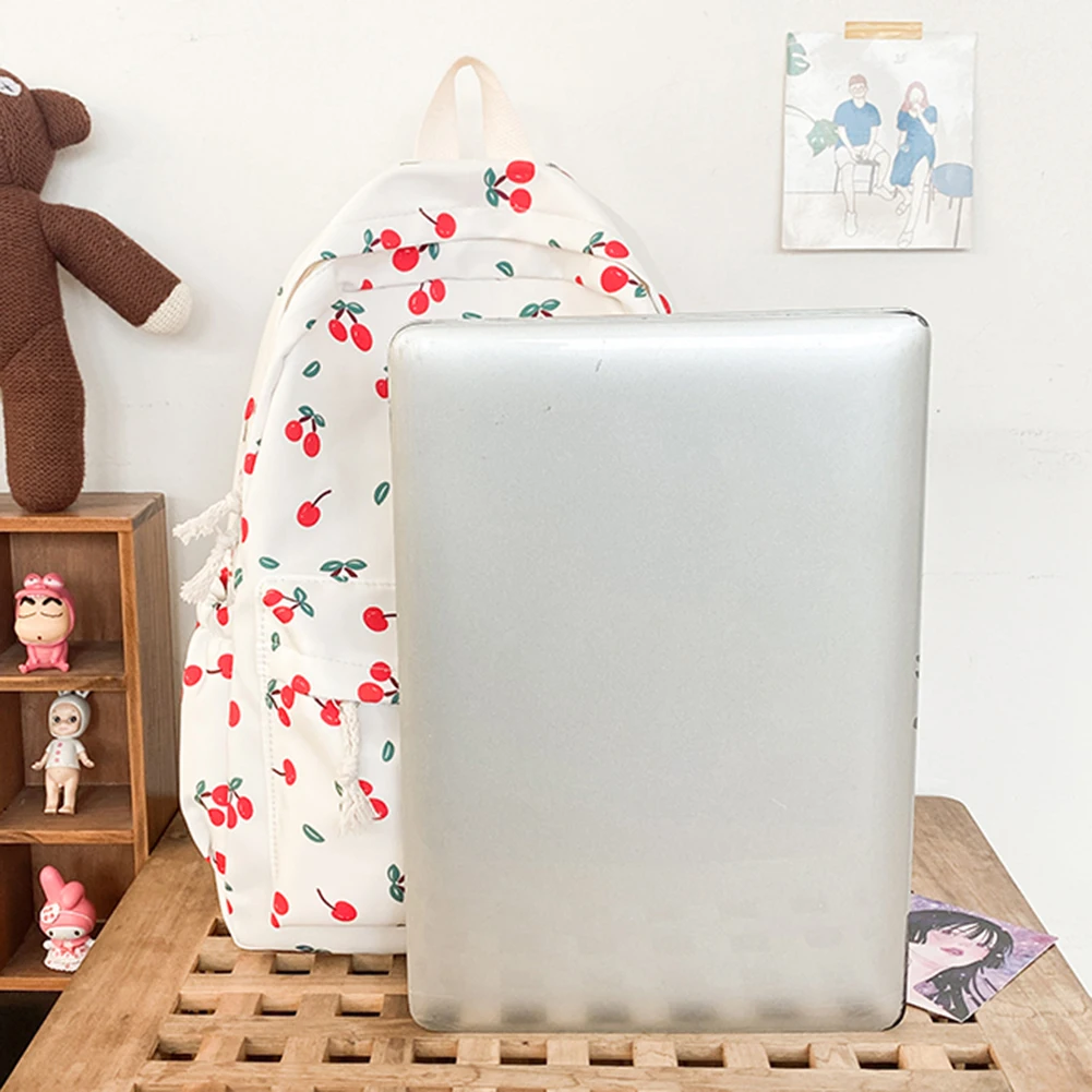 Women Cherry Print Backpack Large Capacity Cute Student Bookbag Adjustable Strap Cherry Pattern Backpack for Teens Girls