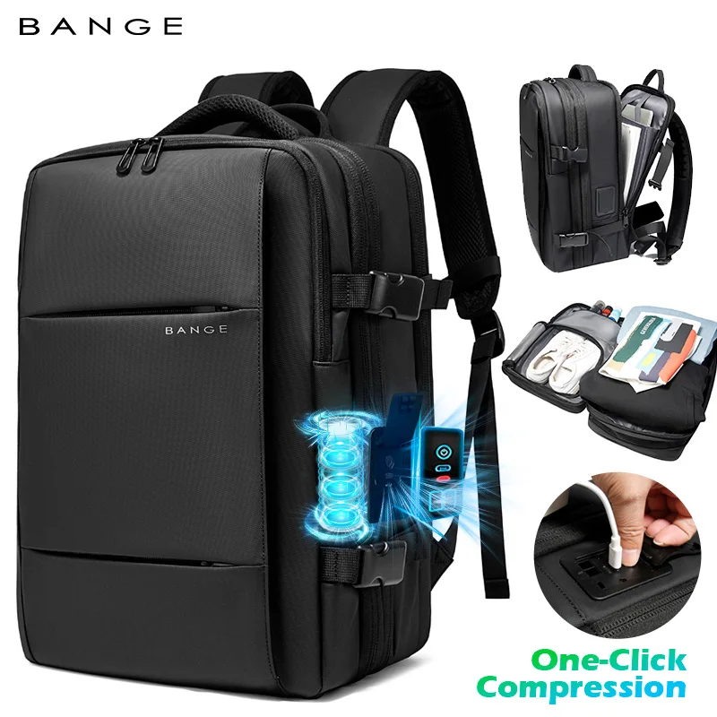 BANGE One-Click Vacuum Compression Backpack, Outdoor Cabin Travel Backpack with Vacuum Pump and Independent Computer Compartment