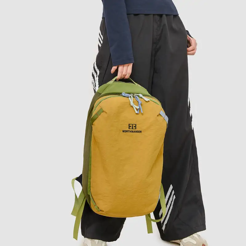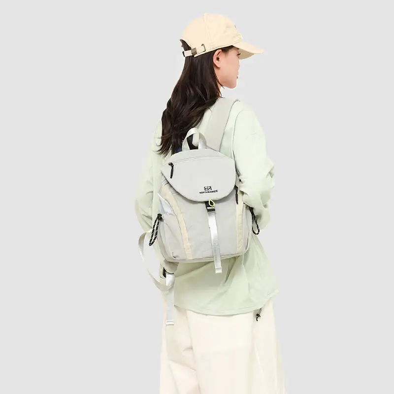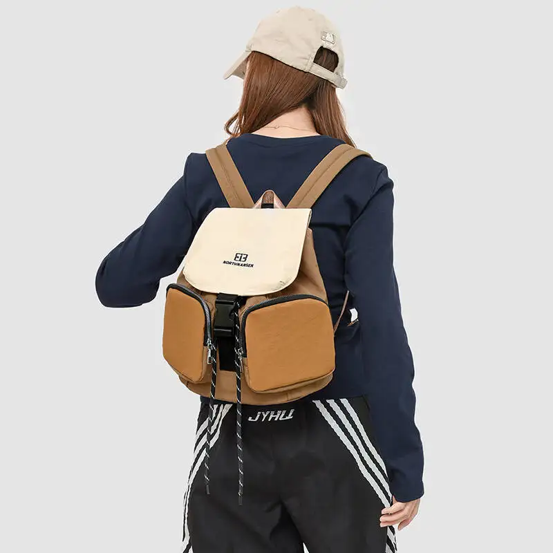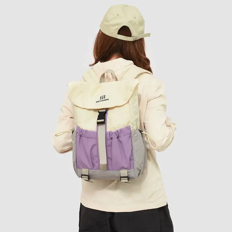New Color Block Backpack Waterproof Nylon with Drawstring Buckle Detail Breathable Mesh Straps for Daily Commute Travel Outdoor