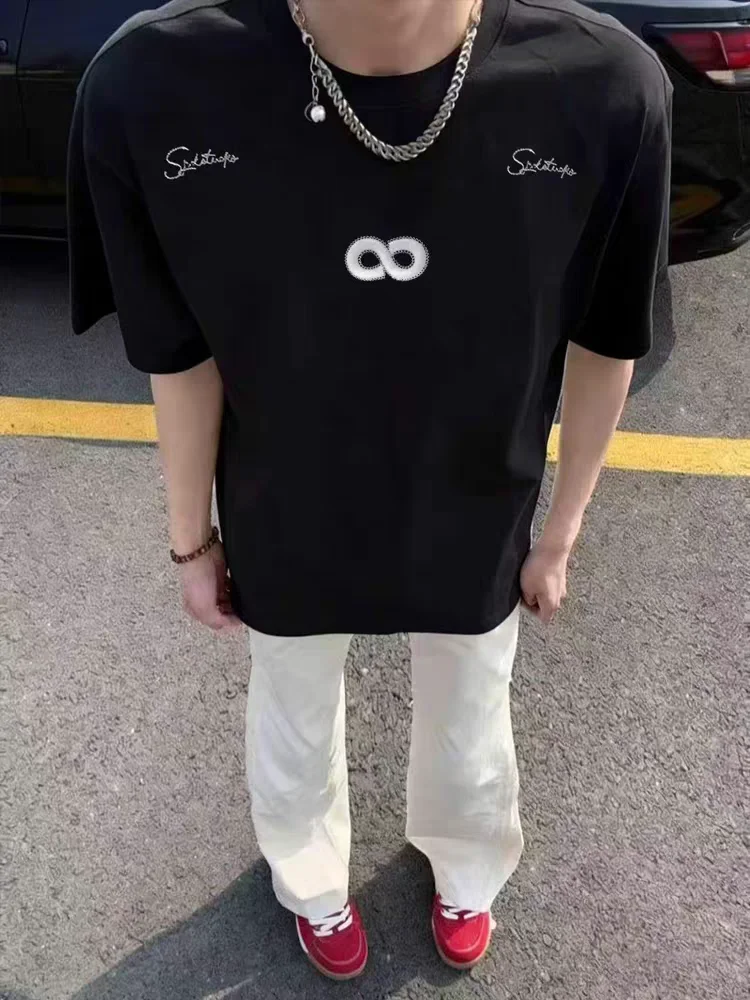 Trendy Embroidered Letter ort Sve T-irt Pure Cotton f Sve Top for Men And Women Summer Design Heavyweight Vibe S...